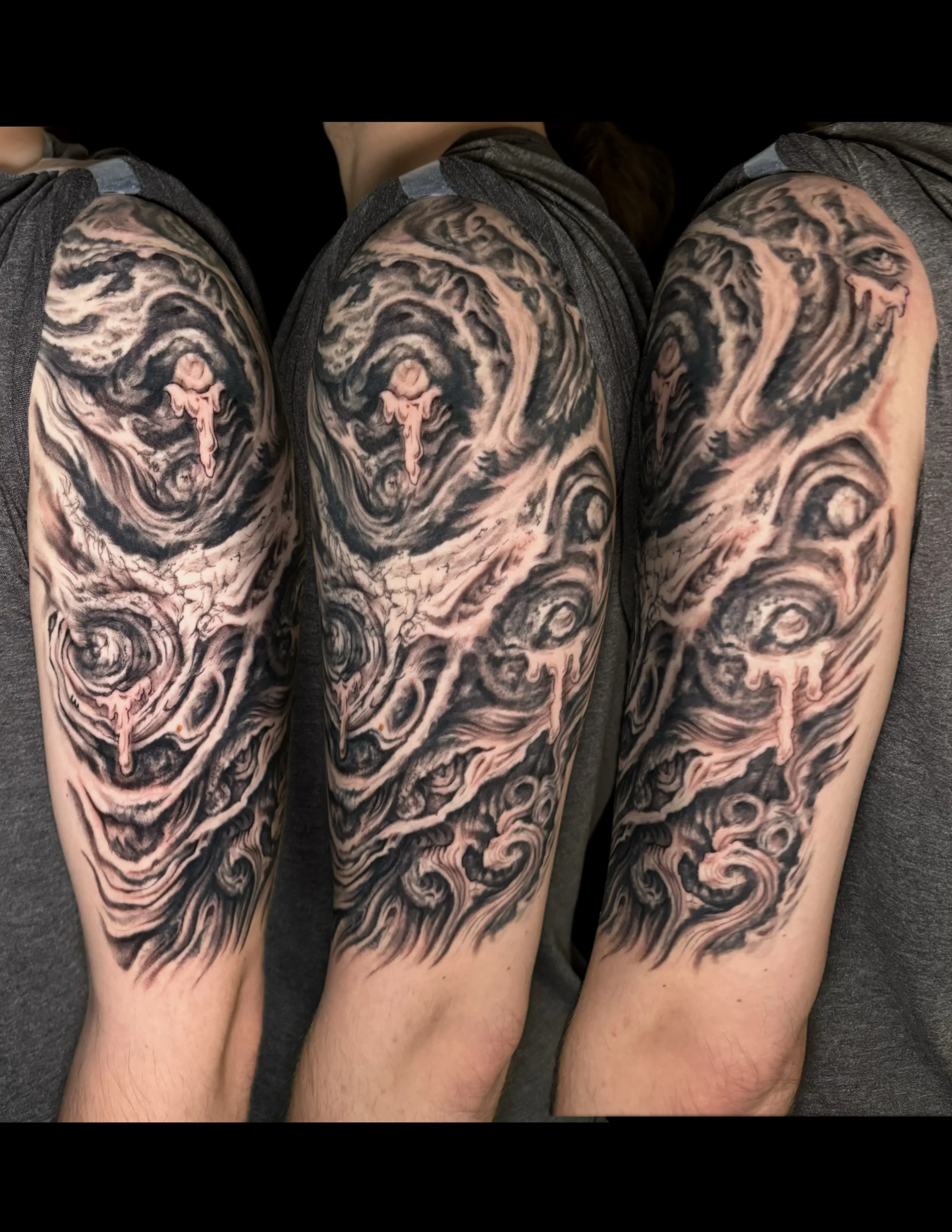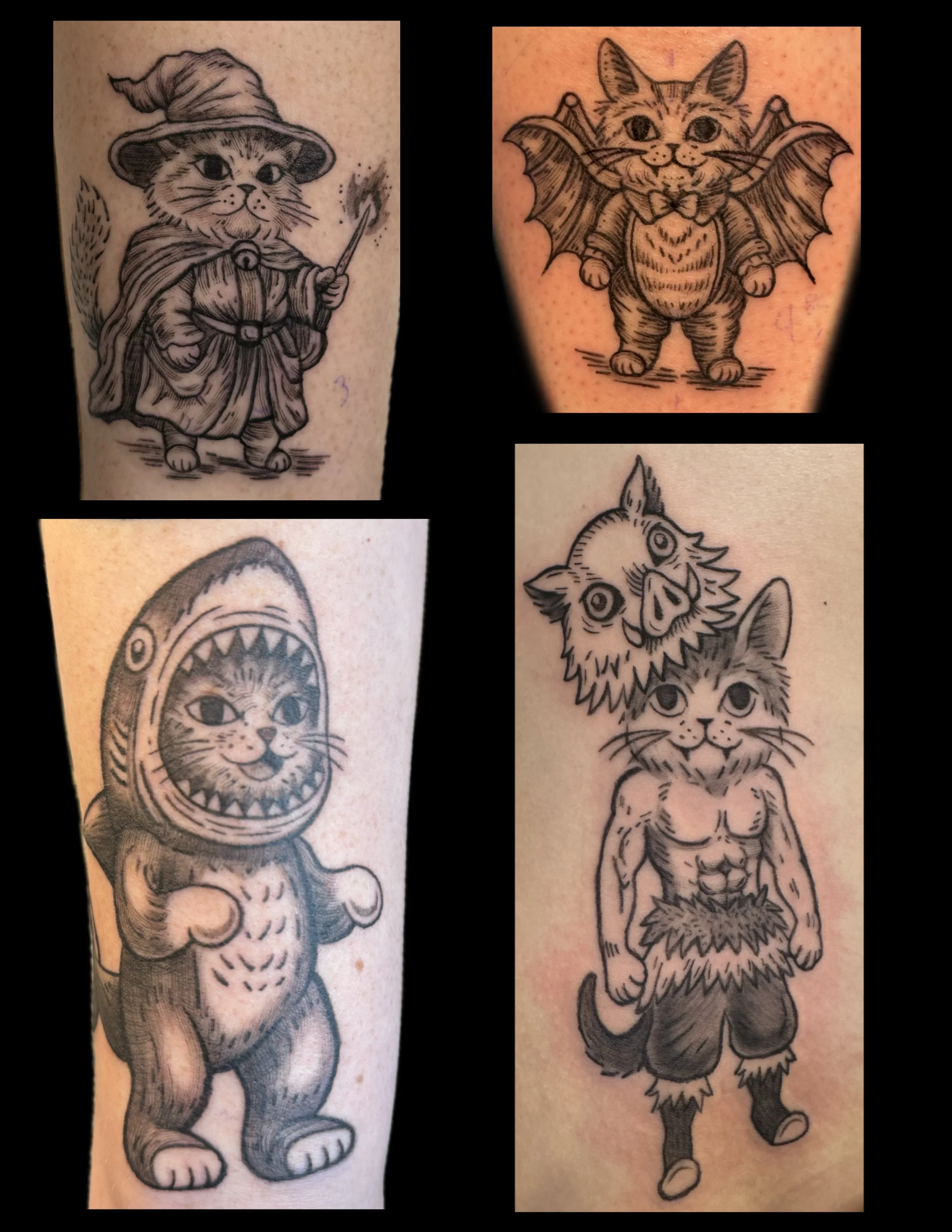 Tattoos that have themes like ( but not limited to ) ANIME, ANATOMY, HORROR, FRACTURED FORMS, HUMANOID CREATURES, FANTASY, ANIMALS and NATURE are totally up my alley. Especially if they have a hint of WEIRD!
